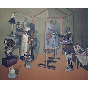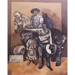 Composición de figuras y animales - Técnica mixta. 100 x 80 cm.